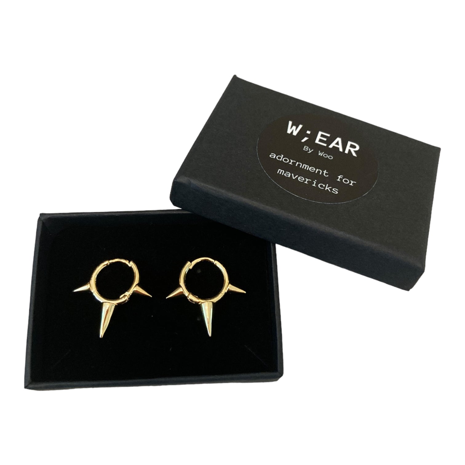 Stainless steel huggy hoops with spikes for the punks and anarchists. Presented in an eco friendly gift box.
