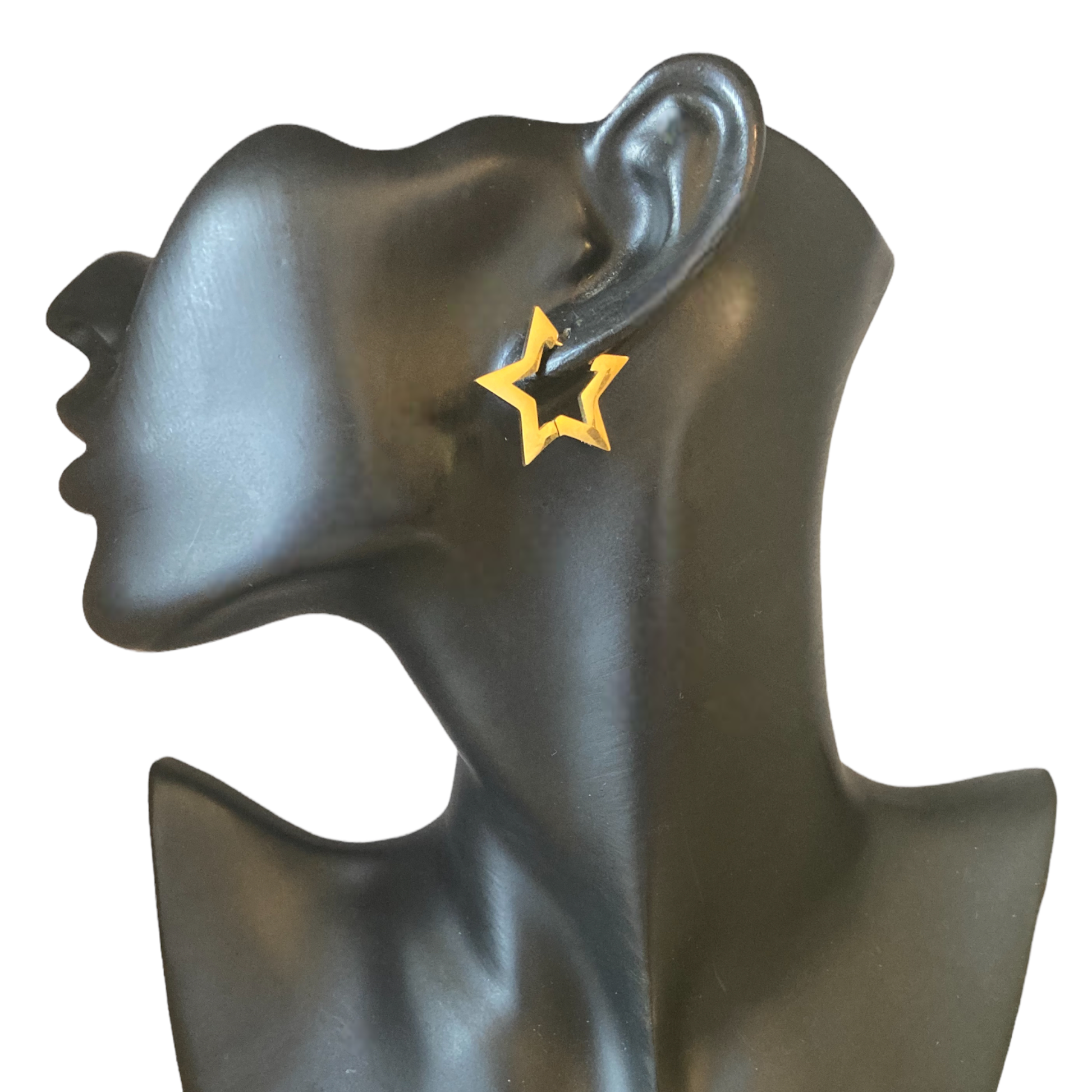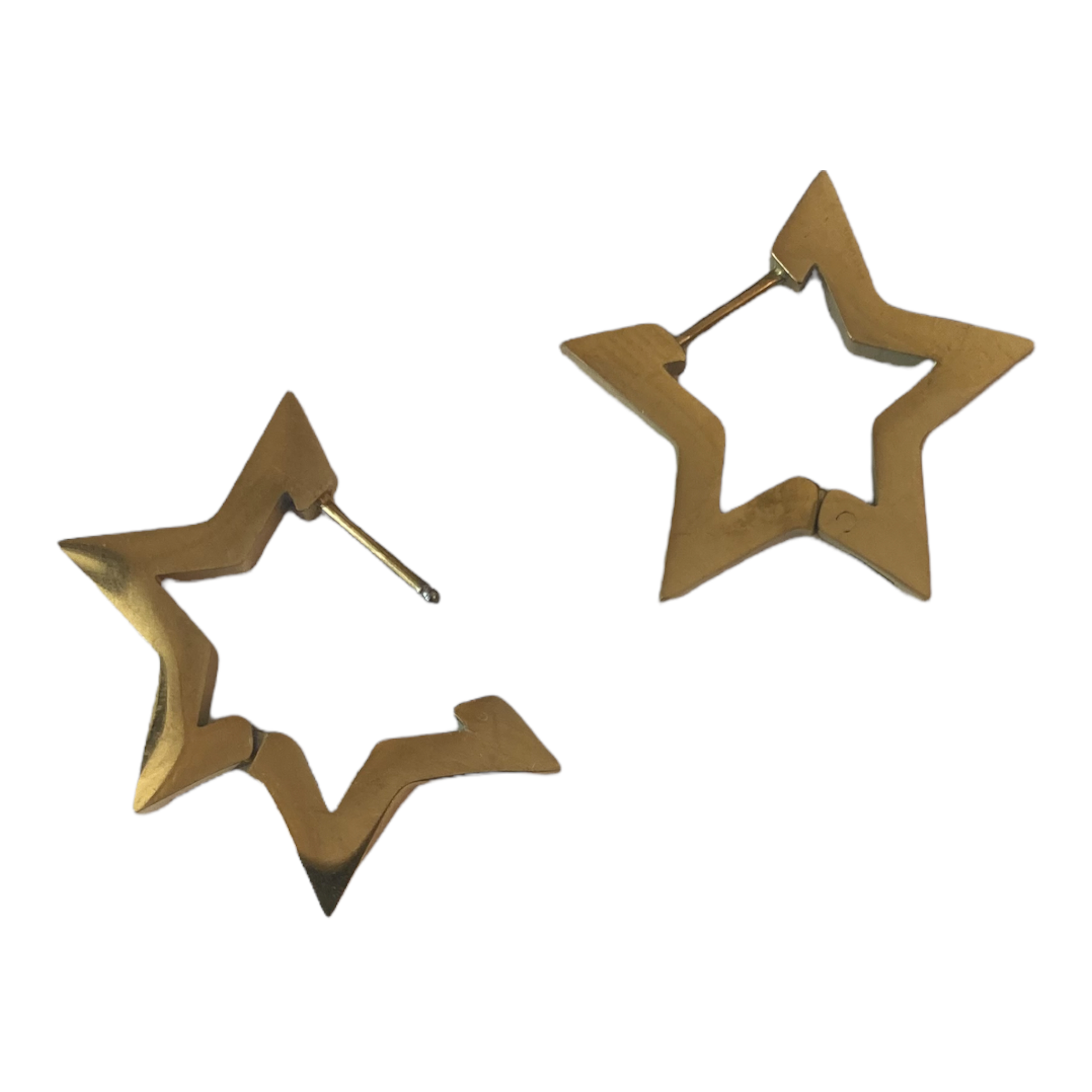 Stainless steel star shaped huggy hoops, for rock stars, super stars and those who like a bit of sparkle. Presented in an eco friendly gift box.